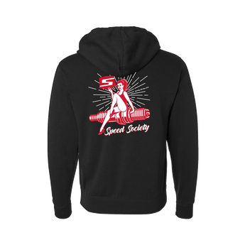 Kick it old school with a little bit of pin up action with the Speed Society "Spark" hoodie design. Who doesn't love a little bit of throwback Americana mixed with hot rodding culture? With the "Spark" hoodie you'll be feeling the vintage vibes every time that you throw it on and you'll be super comfortable, too!
